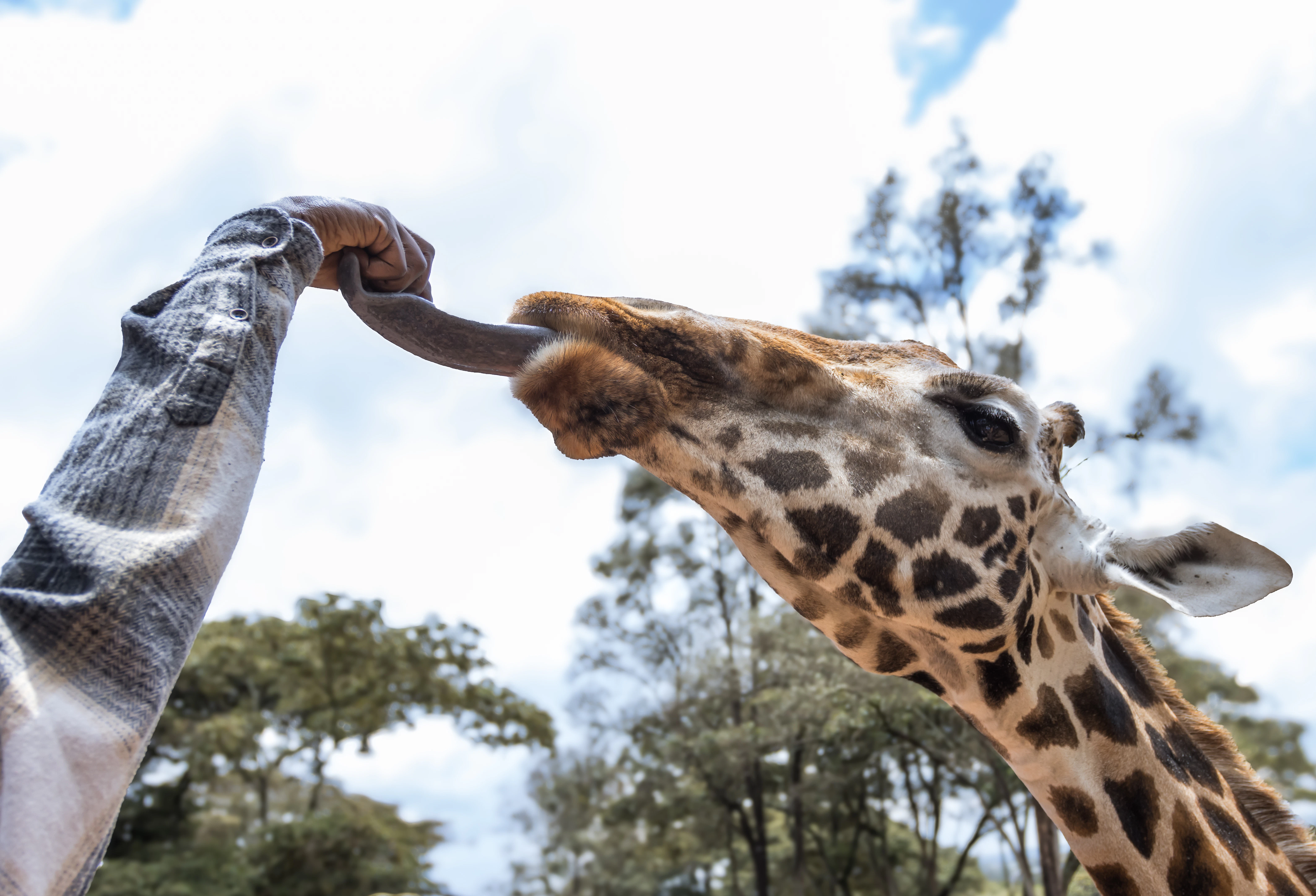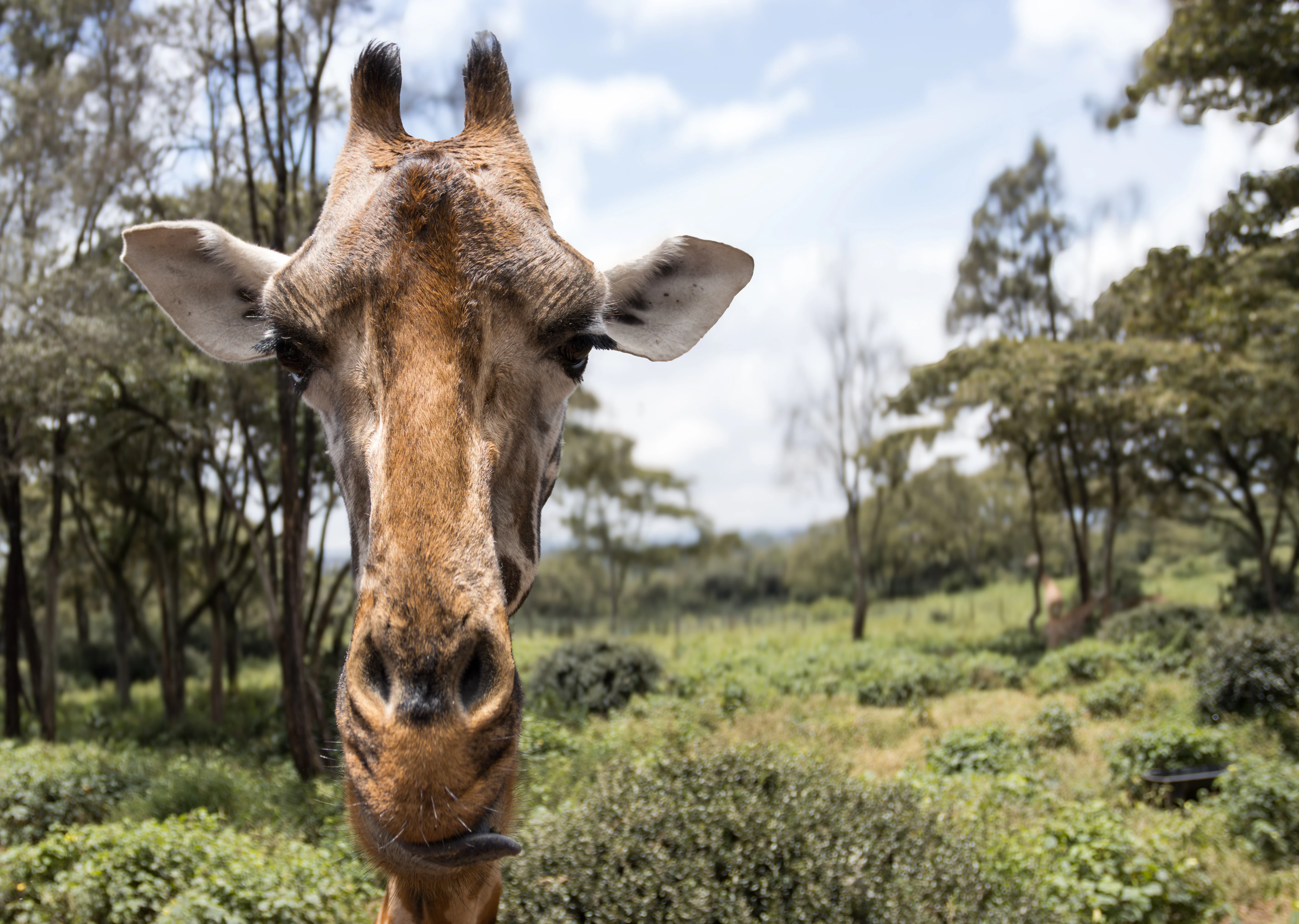Im Stadtteil Langata kann man Rothschild-Giraffen von einer Plattform aus füttern und auf Augenhöhe küssen – ein magisches Erlebnis.