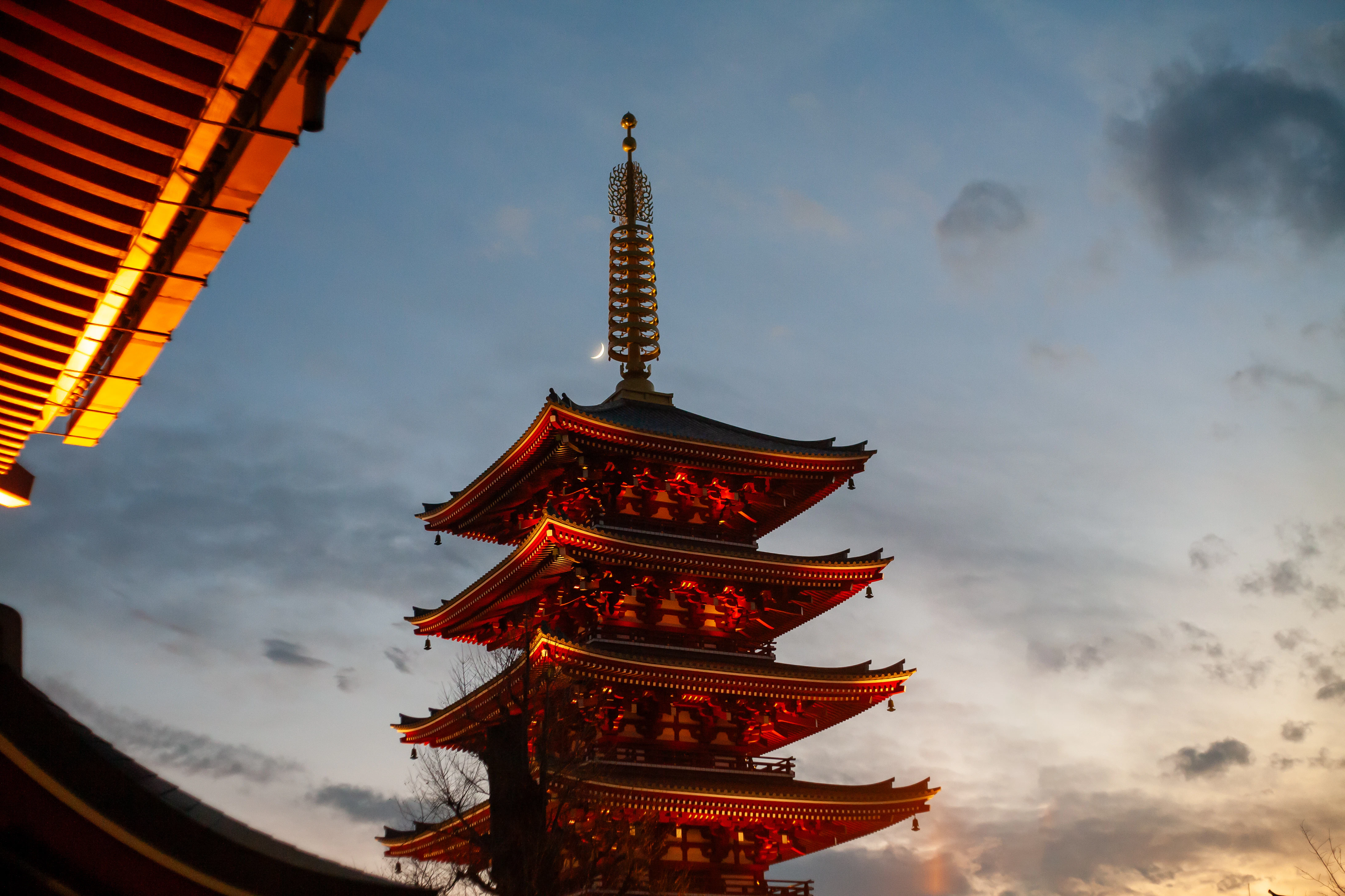 Tokyos ältester Tempel in Asakusa mit dem ikonischen roten Kaminarimon-Tor und der lebhaften Nakamise-Einkaufsstraße – besonders bei Nacht magisch.