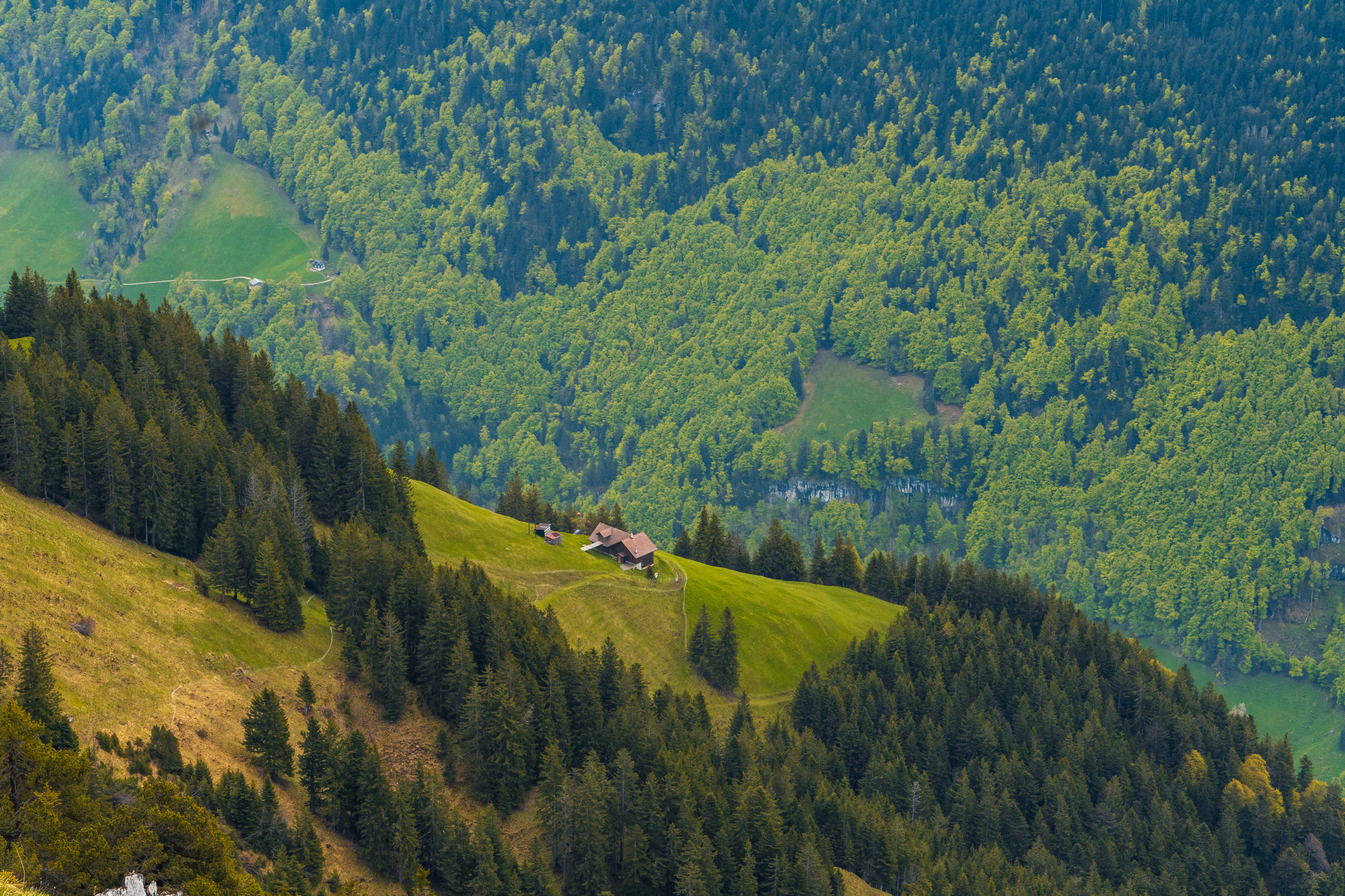 a lush green hillside covered in lots of trees