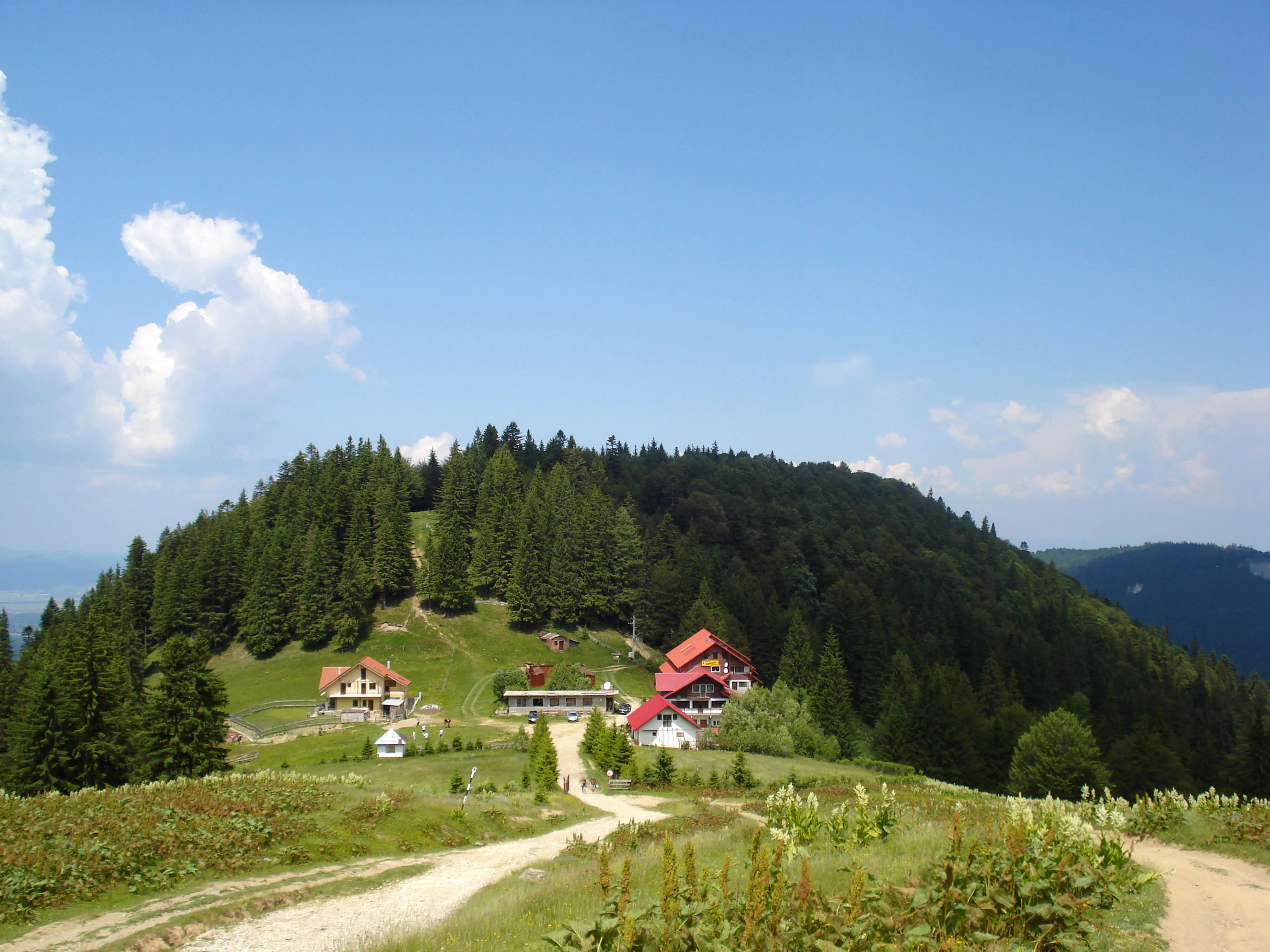 a dirt road in the middle of a lush green hillside