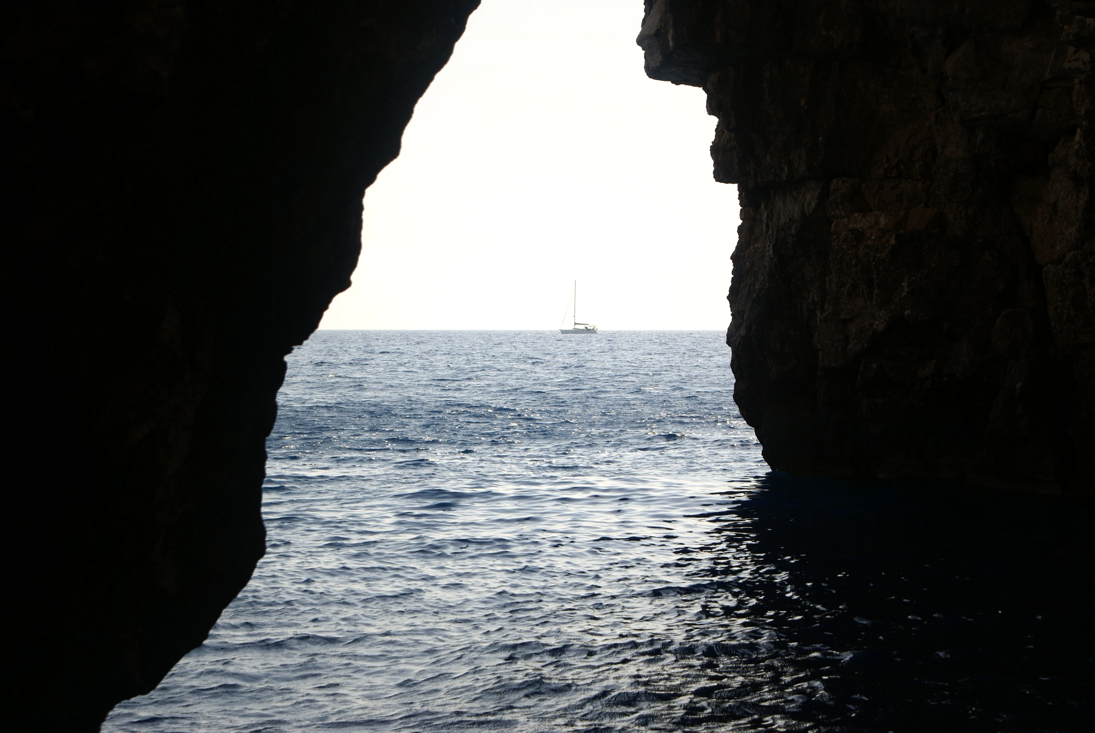 a boat is sailing in the ocean through a cave