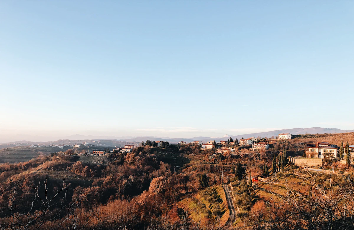 aerial view of houses on top of hill