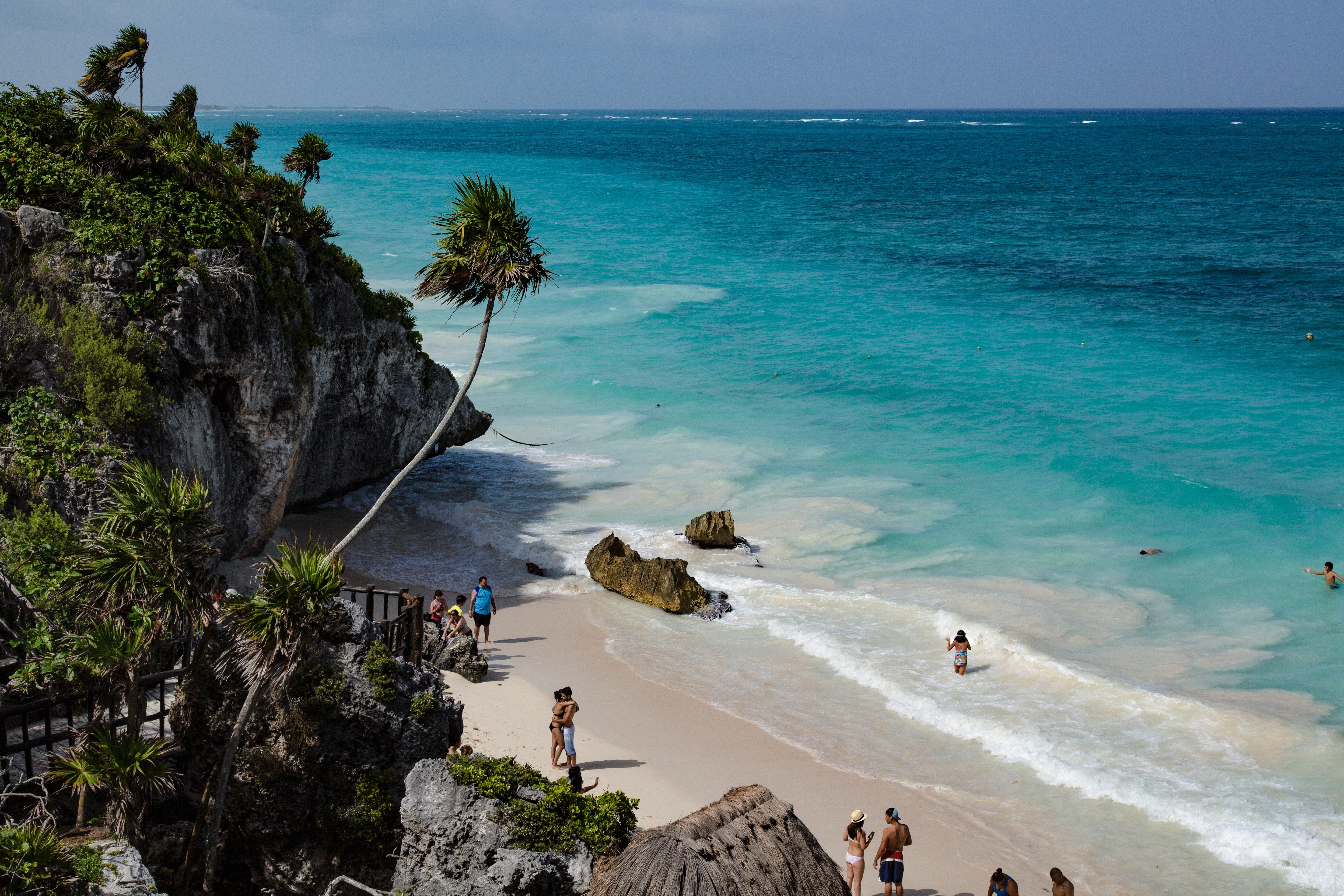 Dramatische Klippen am Südende mit einem kleinen Ixchel-Tempel, Skulpturenpark und Panoramablick auf die Karibik.