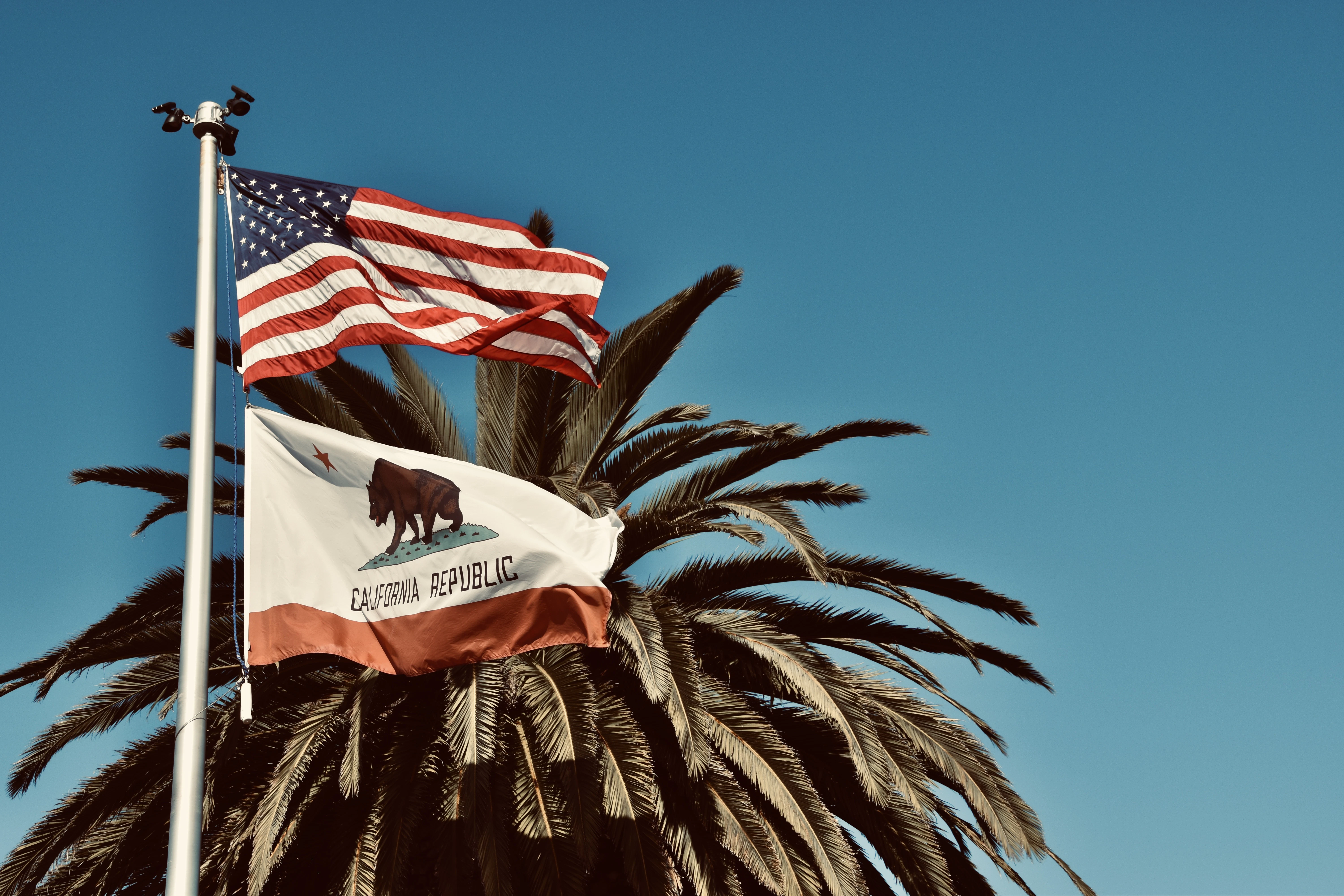 a flag on a palm tree