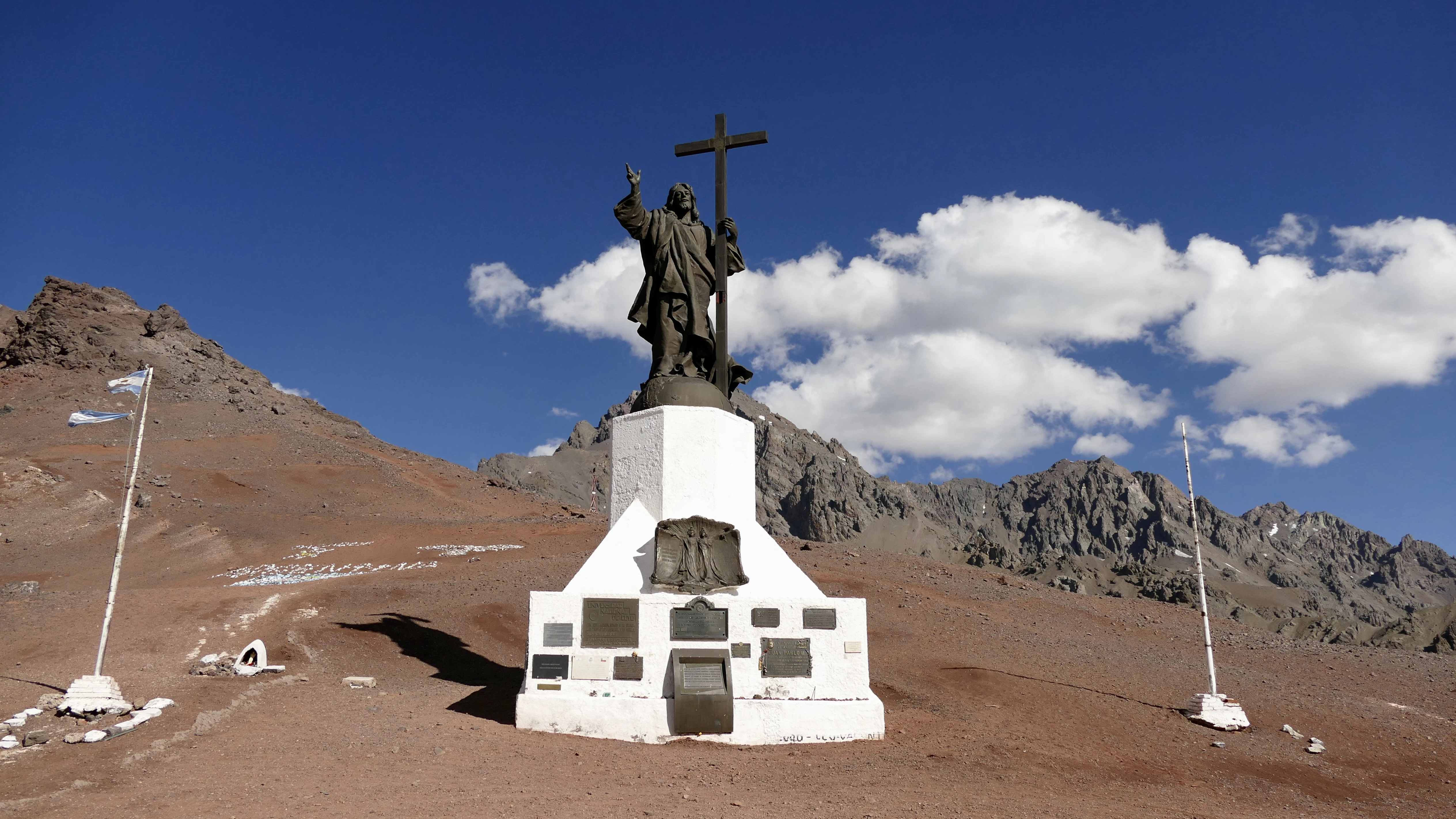 a statue of a man holding a cross on top of a hill